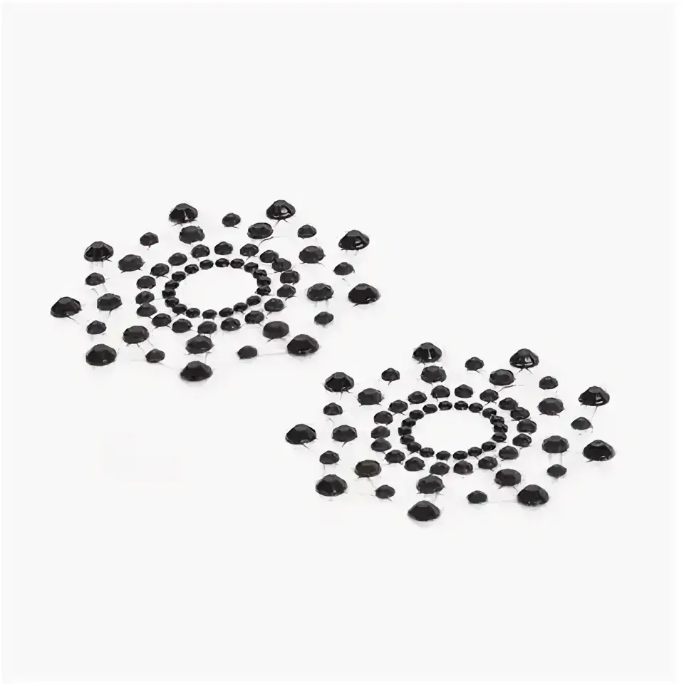 Наклейки на соски многоразовые. Конус выполнен из полиуретана, внутри — слой силиконового геля. Декор: сатин со стразами и серебристая металлическая цепочка. Размер основания: 5 см. Длина цепочки: 28 см.